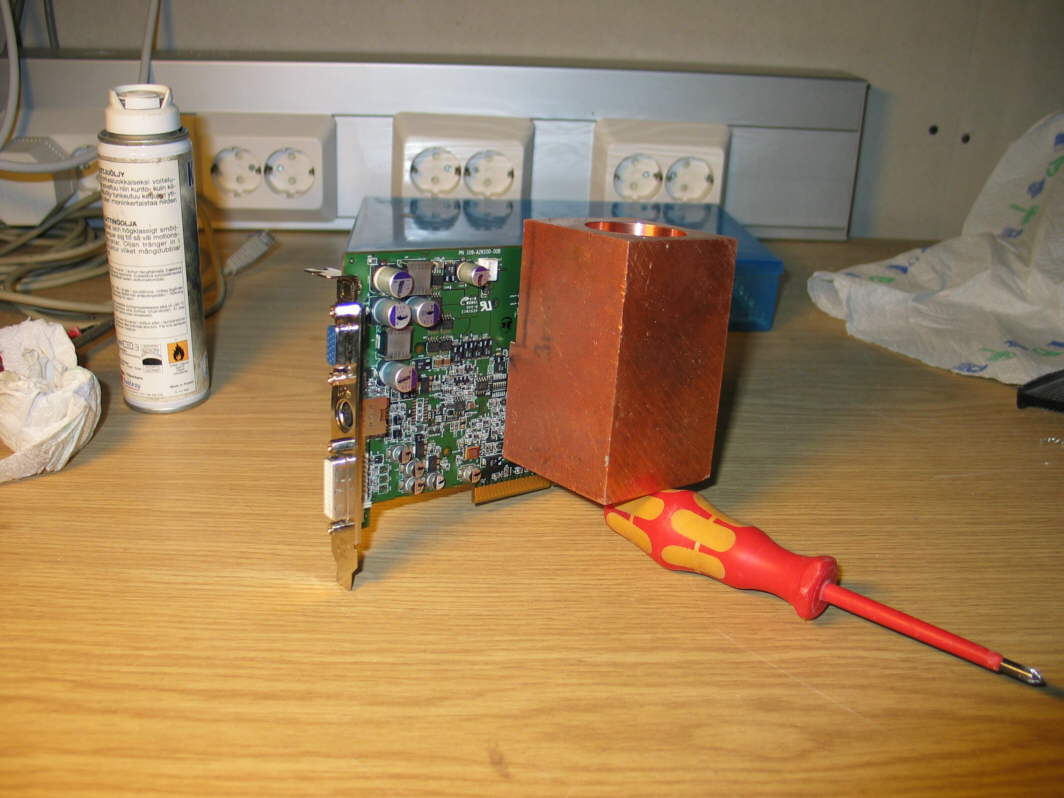 Järjestimme pienen kellotustapahtuman jossa oli tarkoitus "rankaista" uutta Atin X800 XT näytönohjainta nestetypellä, paikalla oli Macci (Sami Mäkinen), Sampsa (Kurri), pari kaveriani (Mäkinen/Mäkinen) sekä tietysti minä itse.